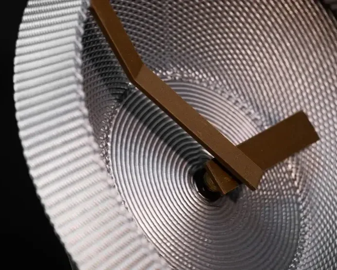 A subtle crease supports the minute hand, allowing it to glide along the surface as if embedded within the object itself. Time is no longer displayed mechanically — it unfolds quietly as motion and form.