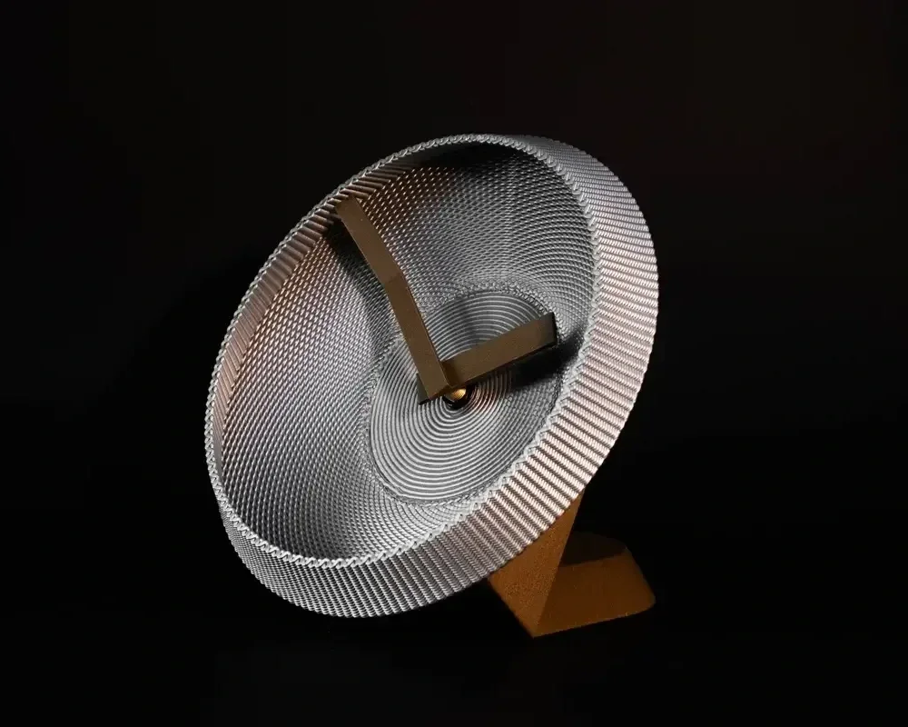 The design continues its exploration of temporal cycles, compressing the experience of time into a more intimate domestic object. The layered spiral grows upward before softly returning inward, maintaining harmony between structure and motion.